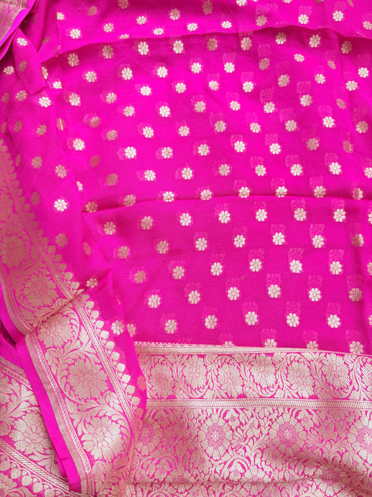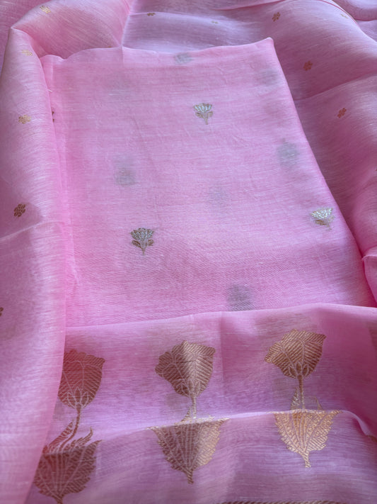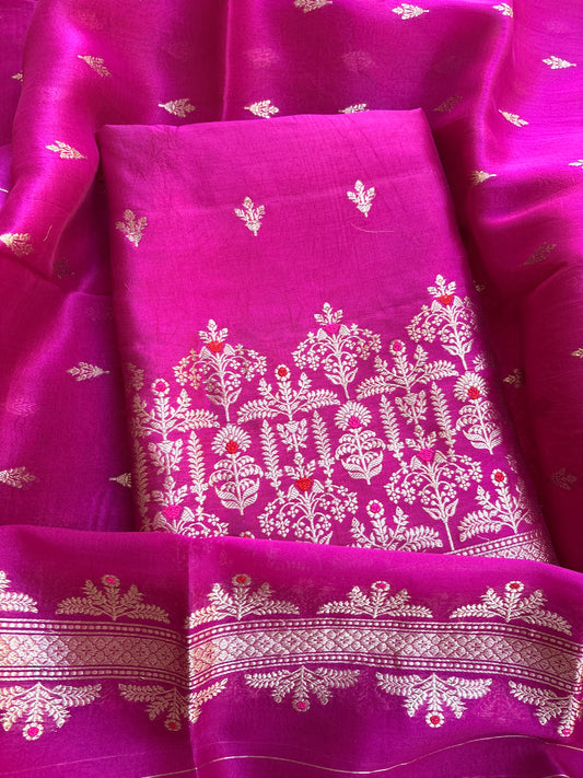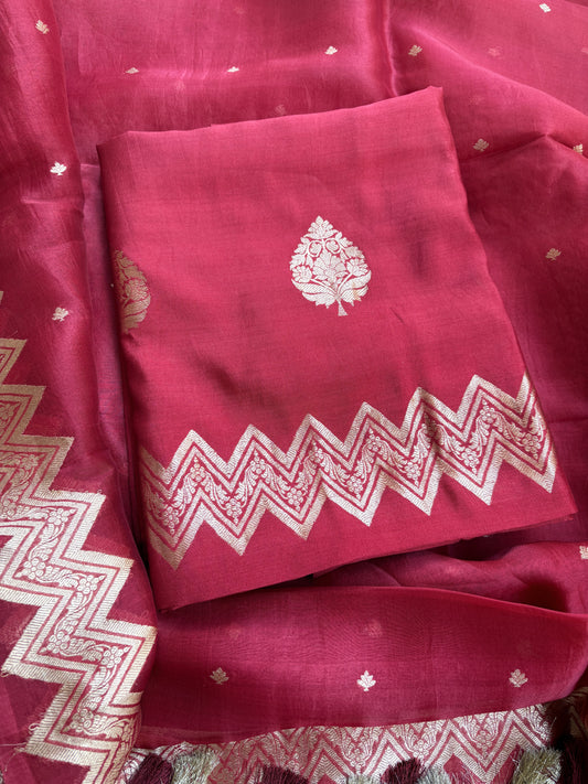Pink Chiniya silk kurta, bottom and Khaddi georgette dupatta