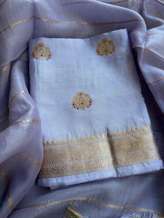 Lavender raw silk kurta, bottom and kora digital dupatta