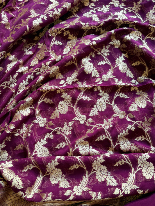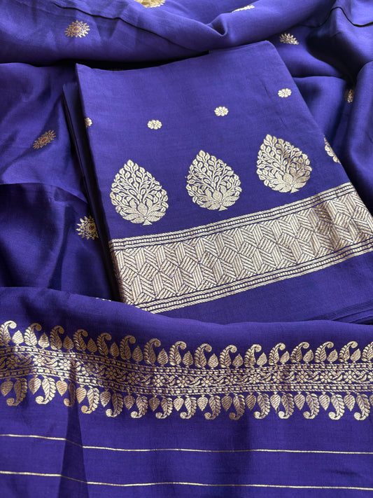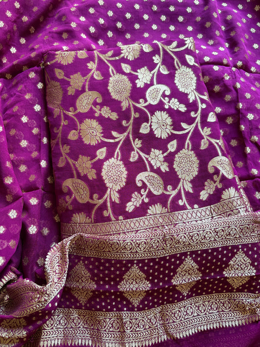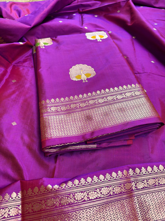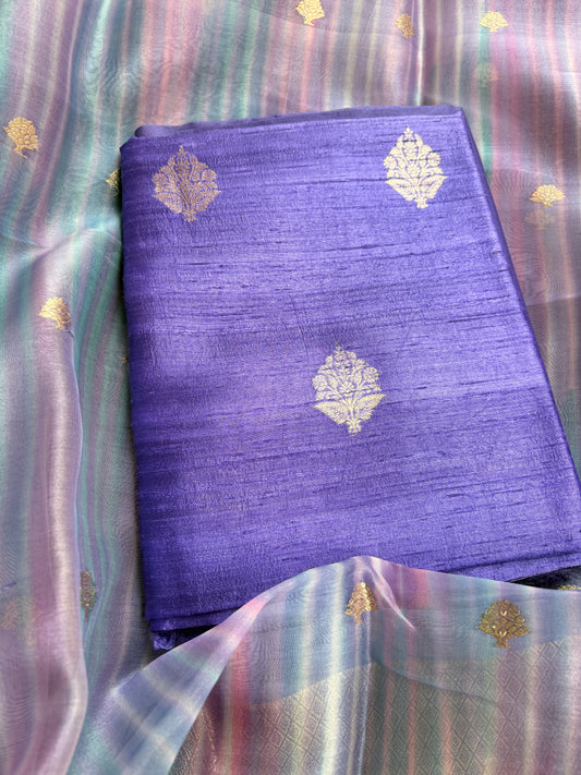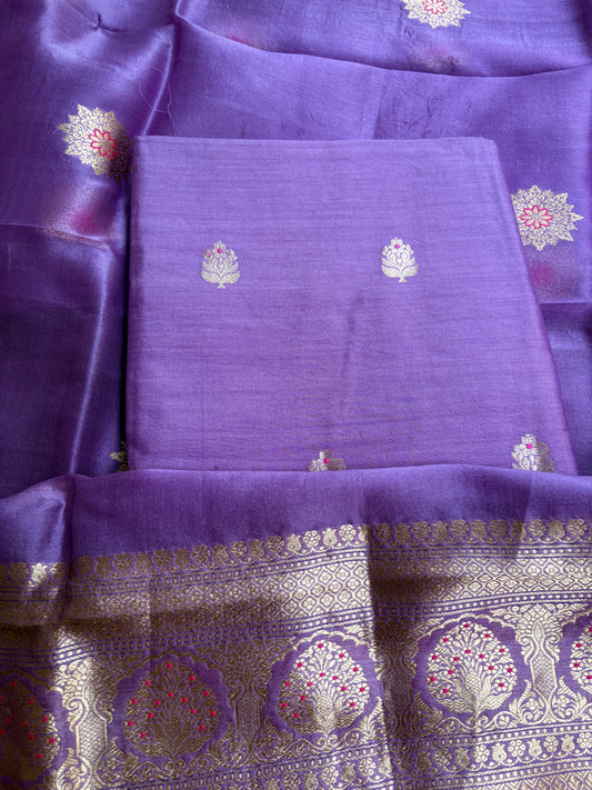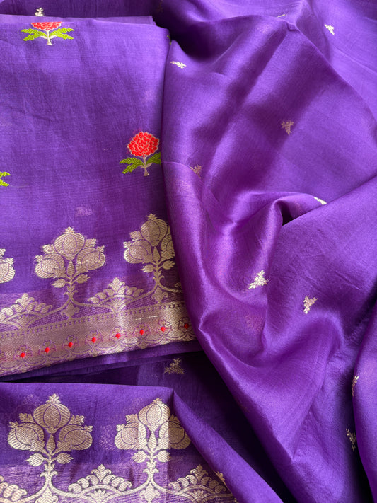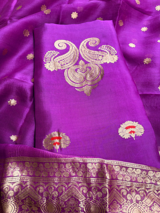 Purple raw silk kurta, bottom and kora kadhwa dupatta