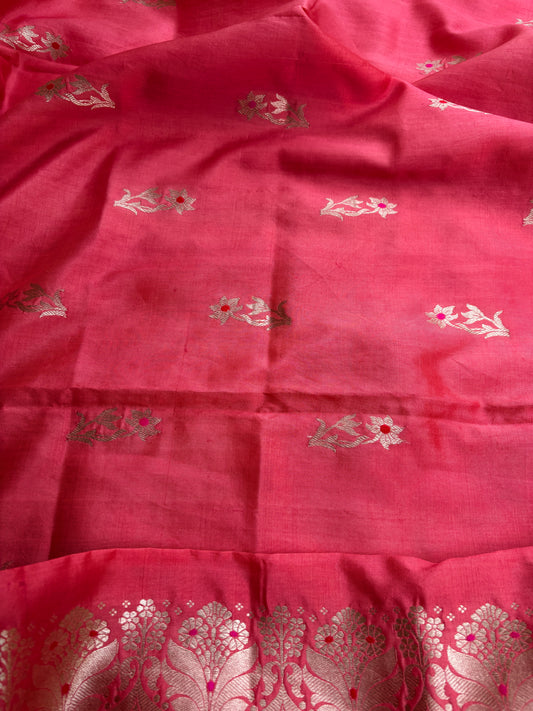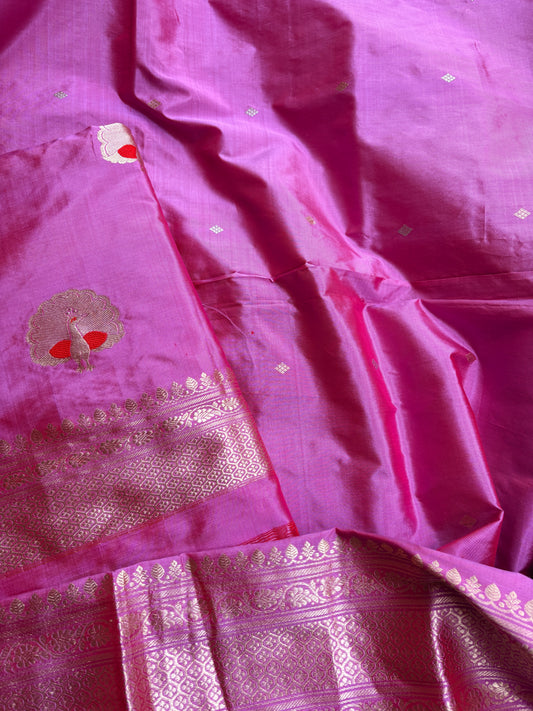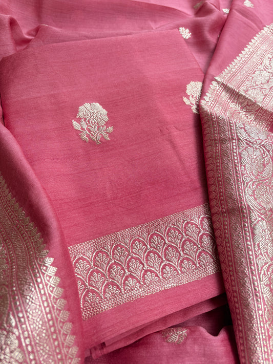 Pink kadhwa meenadar raw silk Kurta, bottom , kora kadhwa dupatta