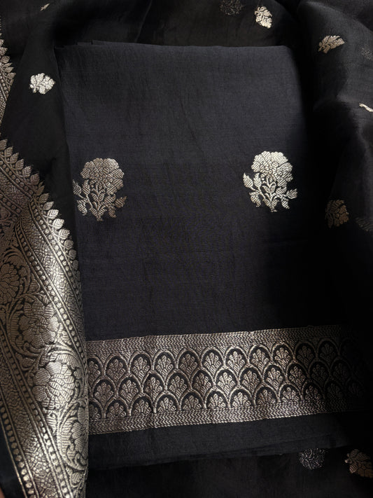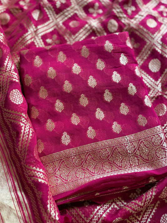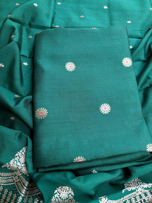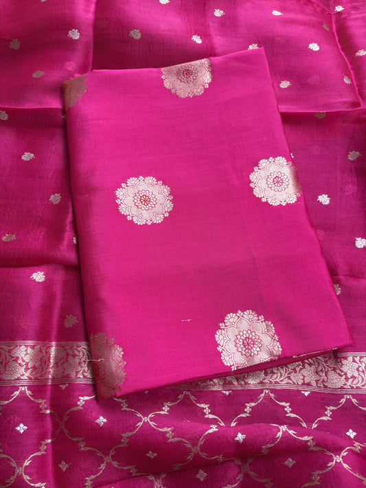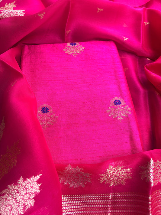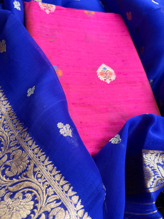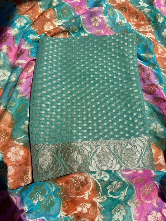 Pure raw silk kurta, bottom and kora digital dyed dupatta