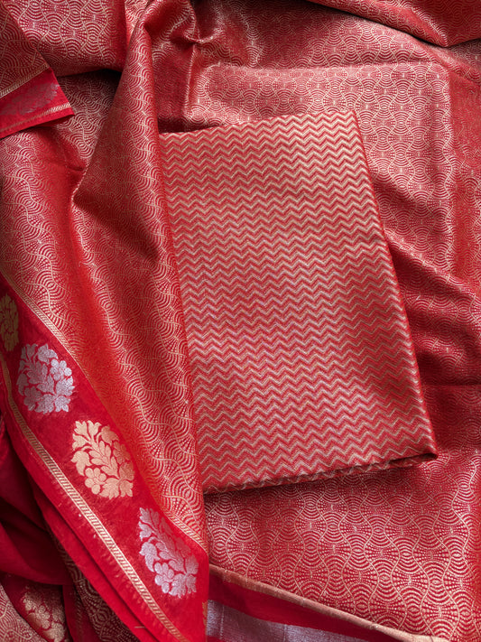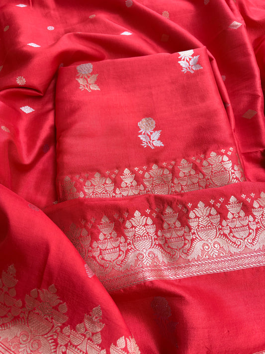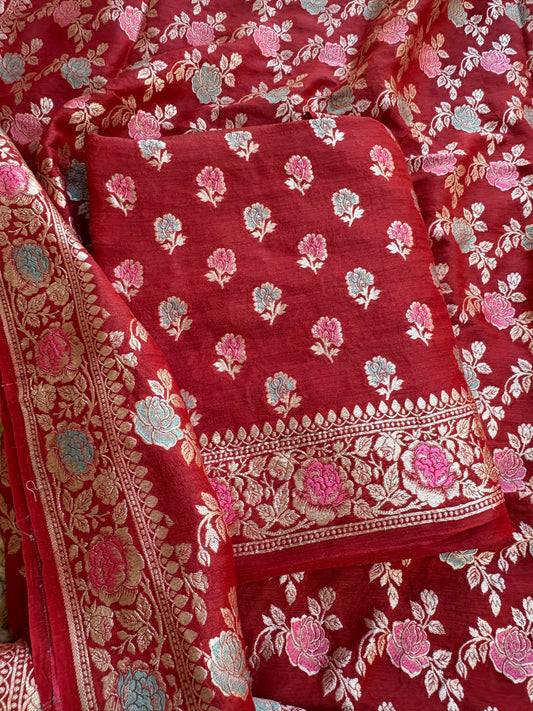 Pure raw silk kadhwa kurta, bottom and kora silk dupatta