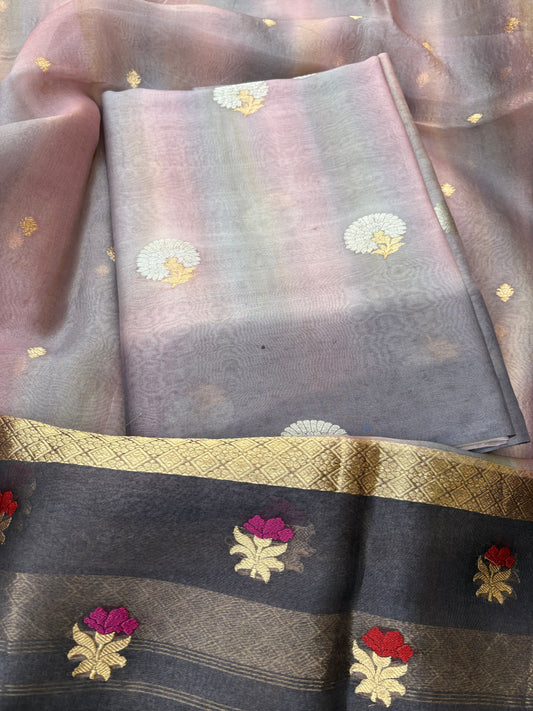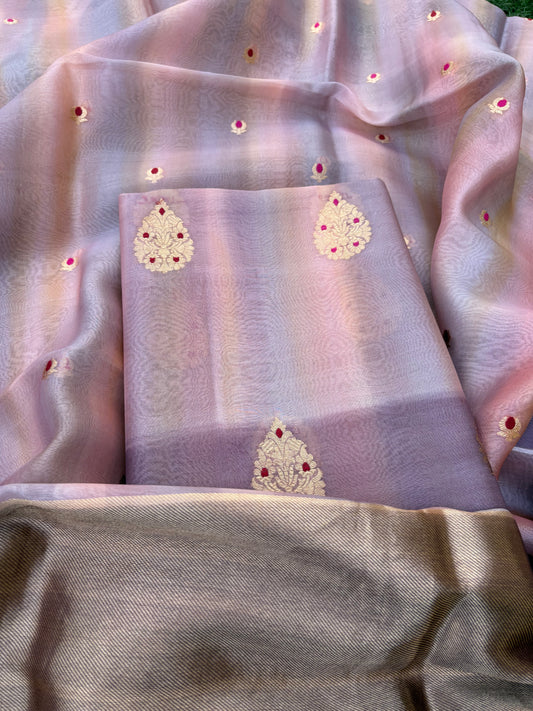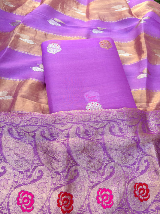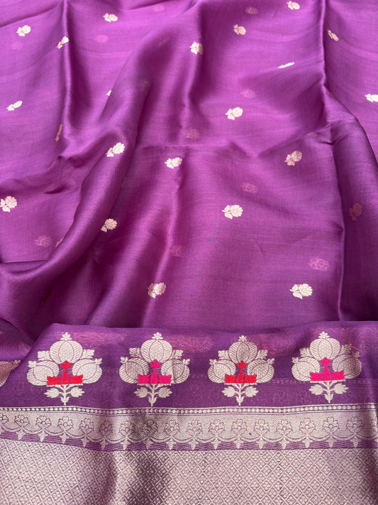 Lavender pure kadhwa silk kurta, kora tissue dupatta , plain silk bottom
