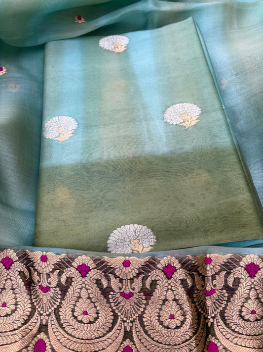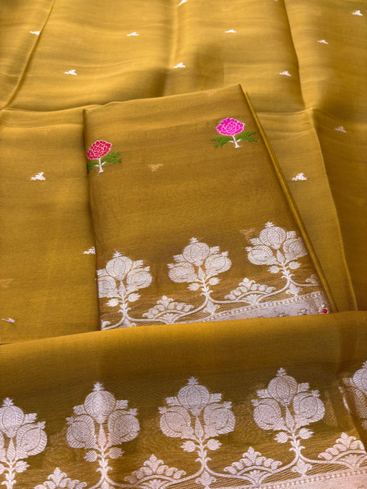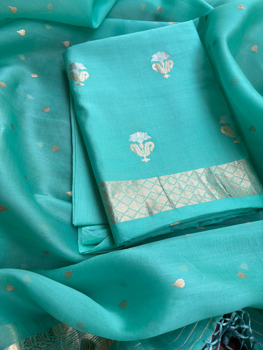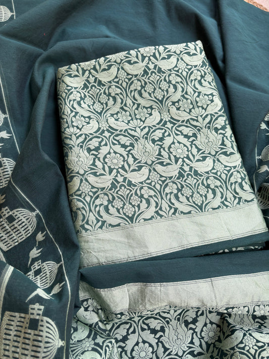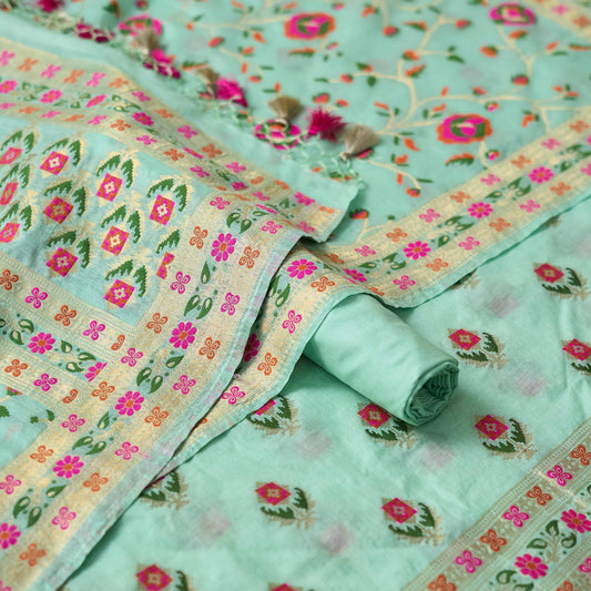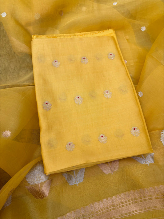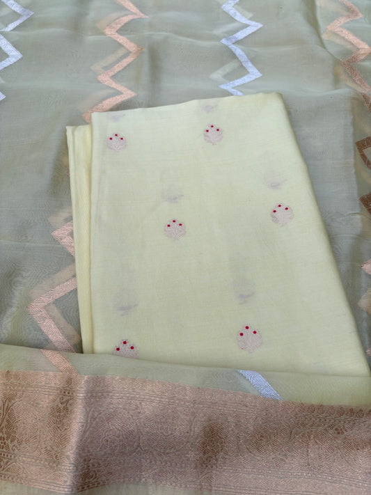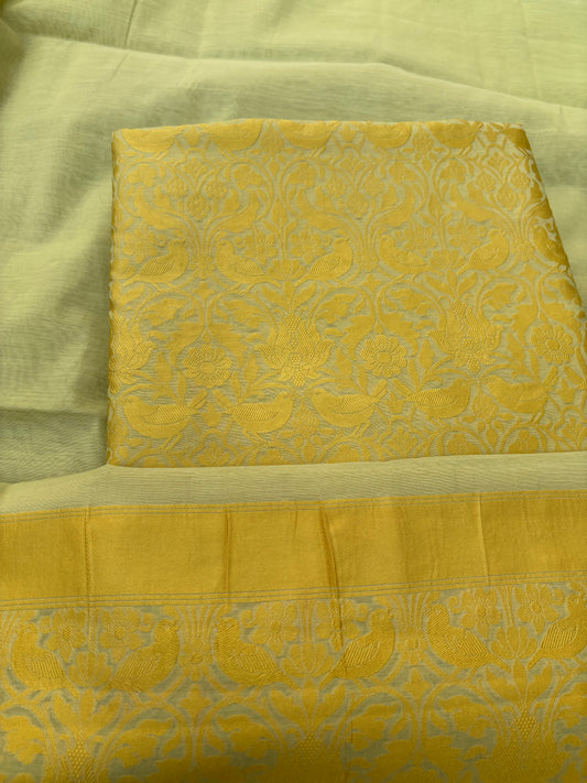 Lime green yellow weaving Chanderi cotton 3 piece suit set