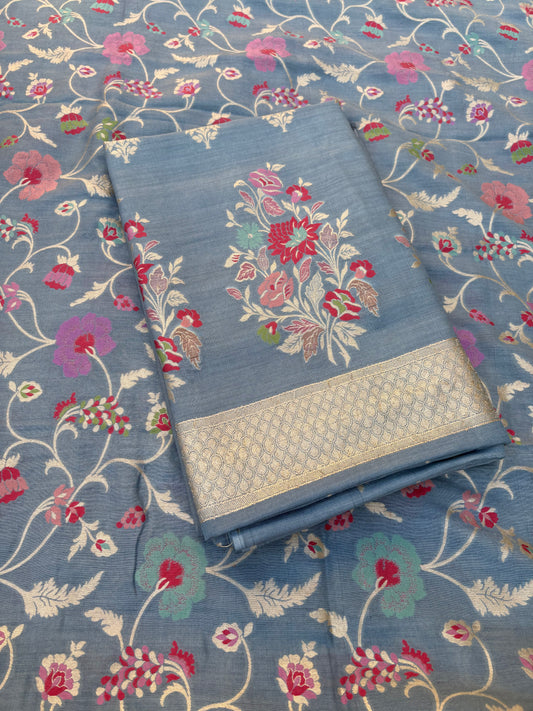 Blue raw silk kurta, bottom, Chiniya kora dupatta