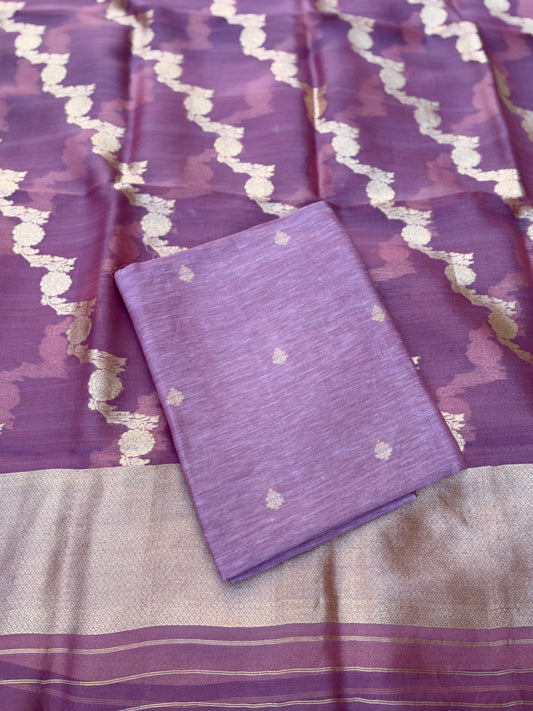 Lavender linen silk kurta, kora silk dupatta, plain bottom