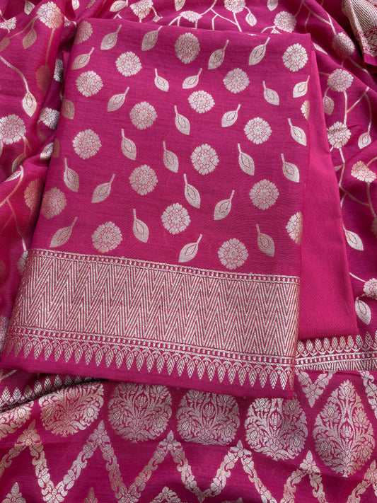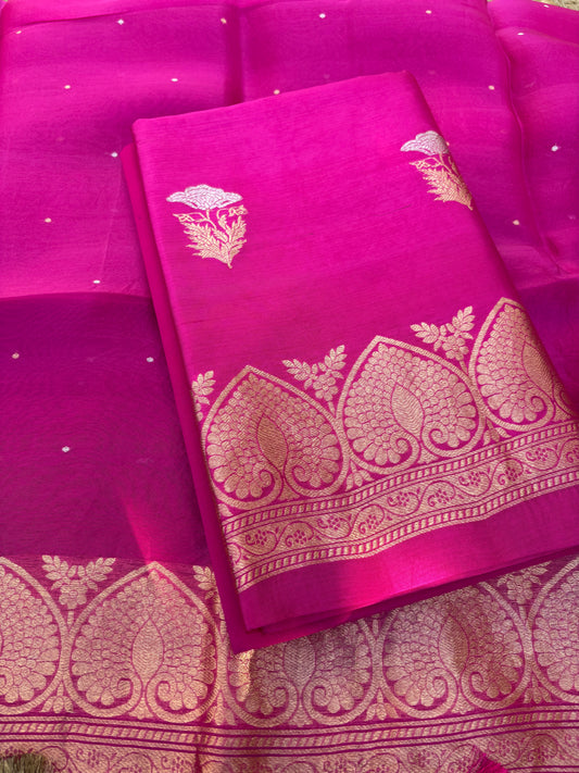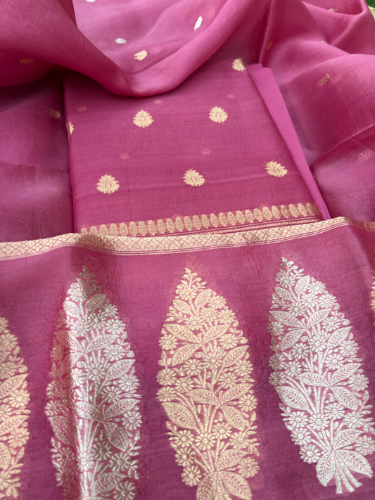 Pink Sona Roopa kurta, kora kadhwa dupatta, plain bottom