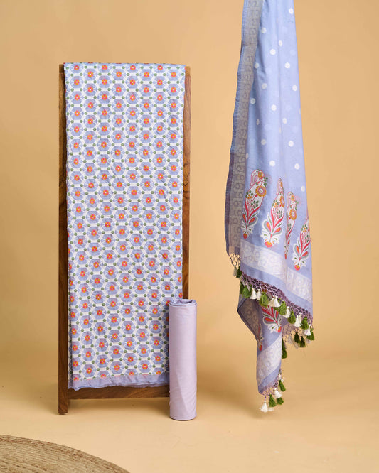 Lavender Chiniya meenadar kurta, kora silk dupatta, plain bottom