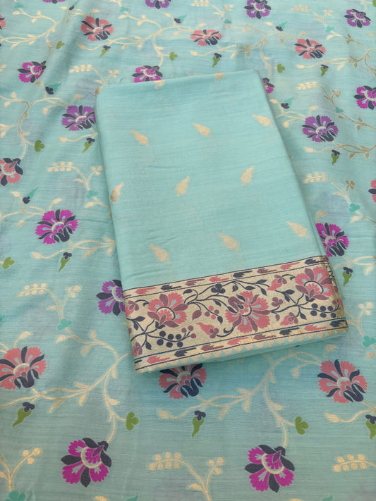 Turq moonga silk tilfi weaving kurta, jaal meenadar dupatta, plain bottom
