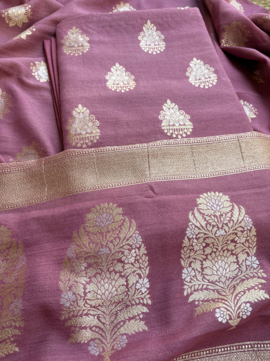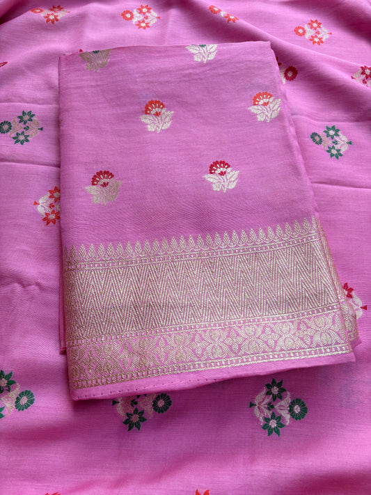 Pink Chiniya silver zari kurta, kora silk dupatta, plain bottom