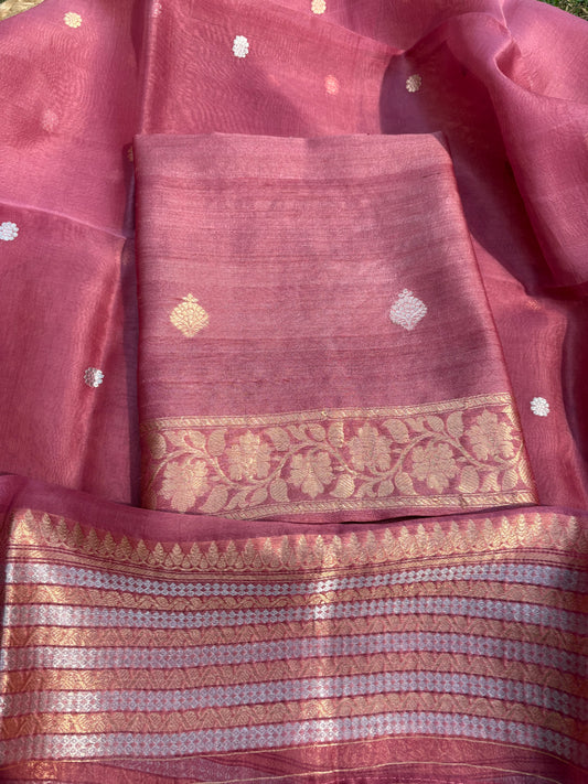 Rani raw artisan silk brocade silk kurta, kora tissue dupatta, plain bottom