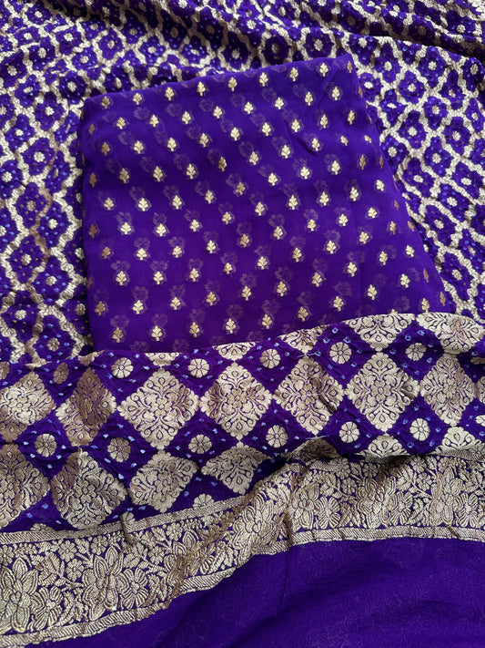 Purple chiniya meenadar suit set, kora silk dupatta, plain silk bottom.