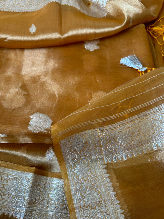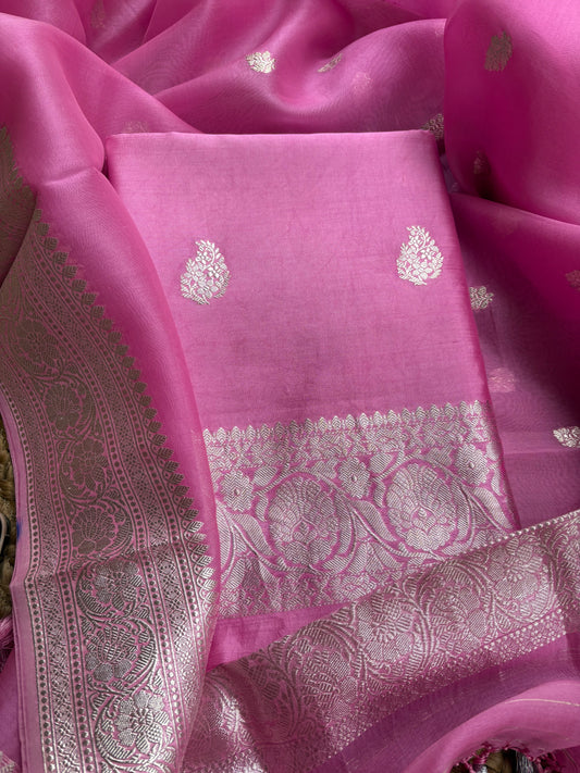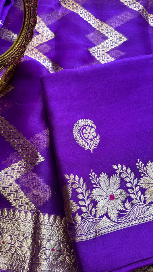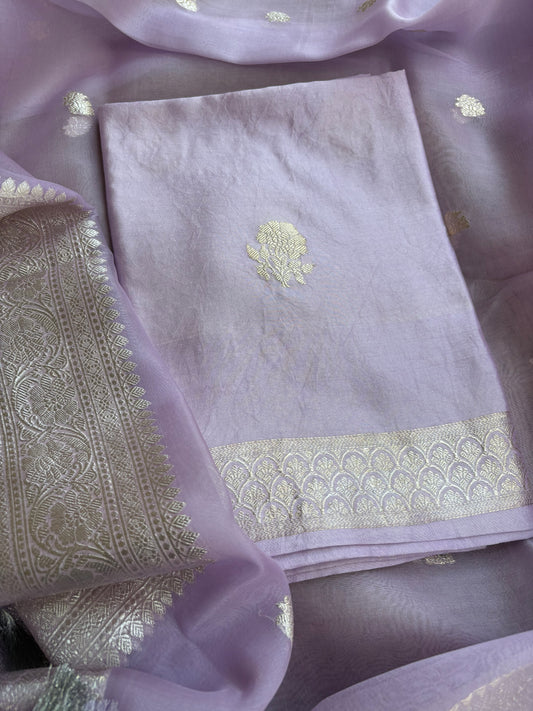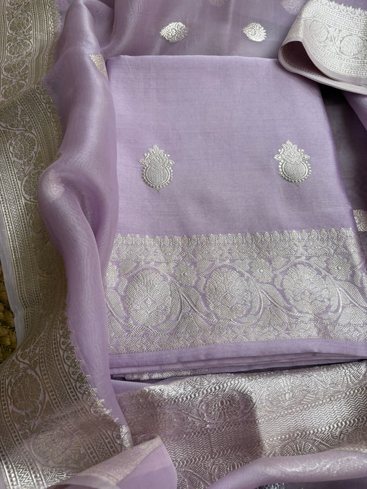 Lavender pure silver zari kurta, kora dupatta,plain bottom.