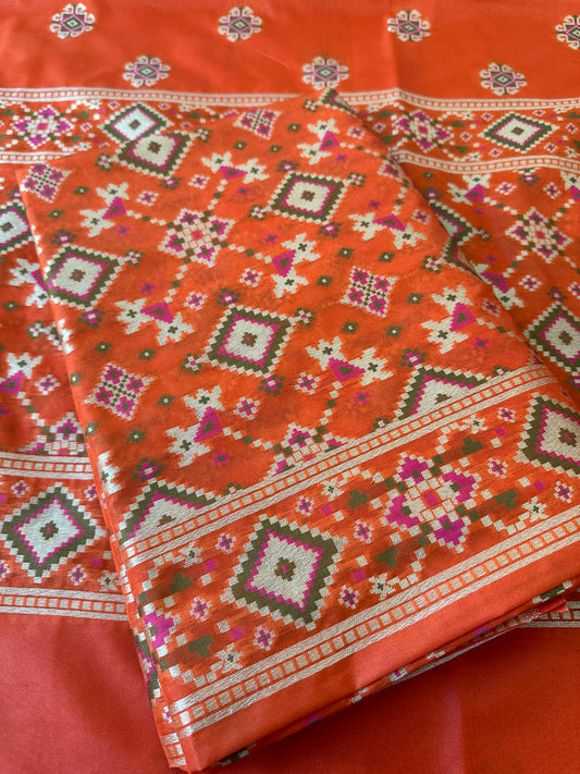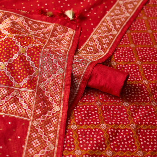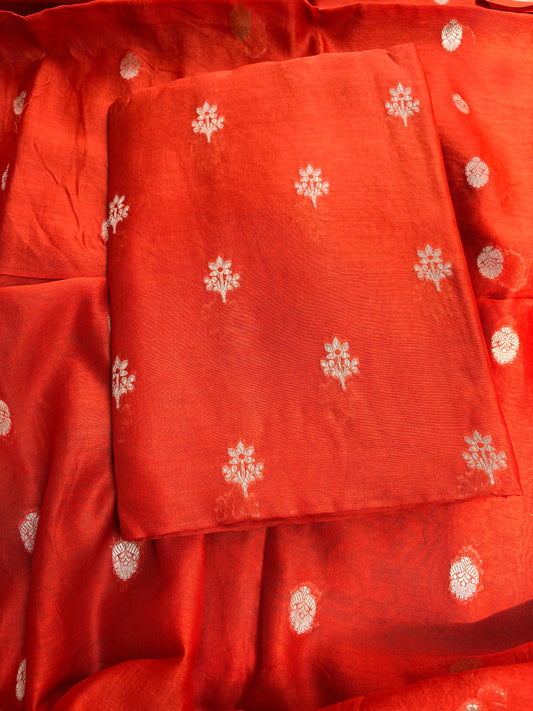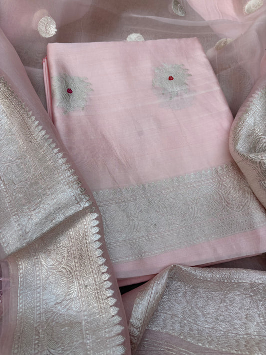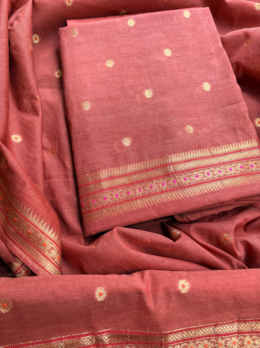 Peach Full Jaal Weaving Chanderi Cotton Suit Set (Pit Handwoven)
