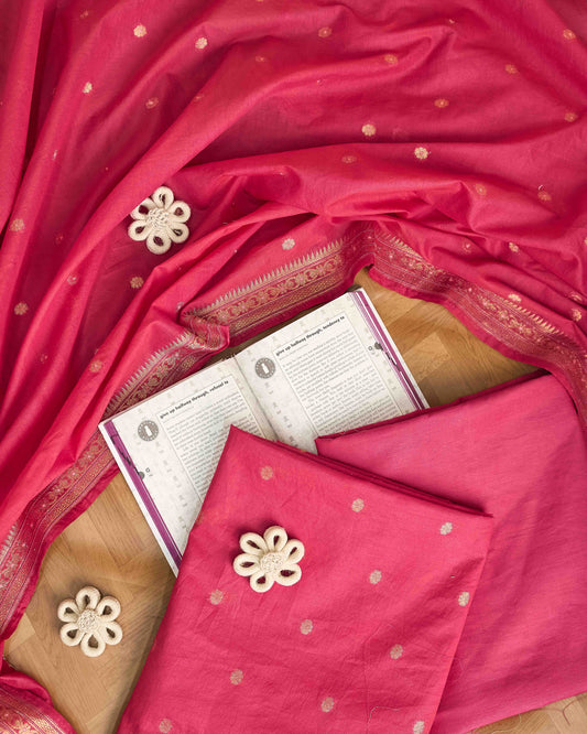 Rani pink weaving kurta,jaal weaving dupatta, plain bottom