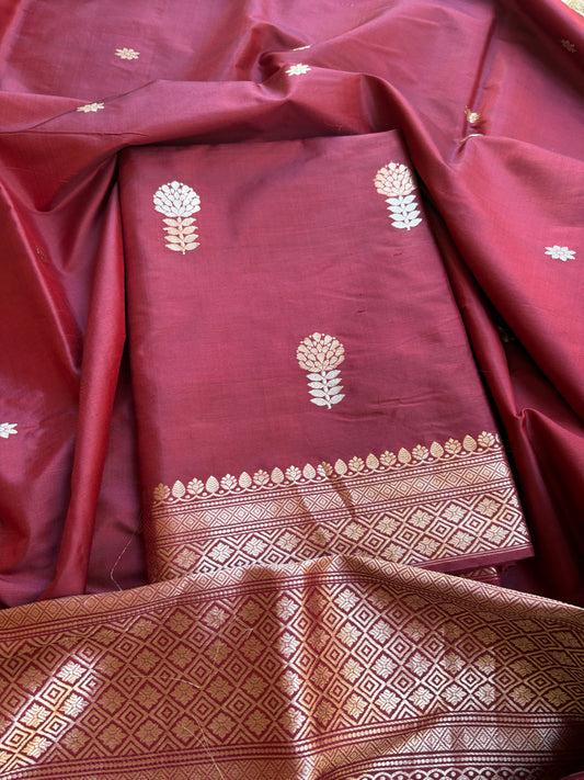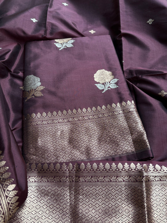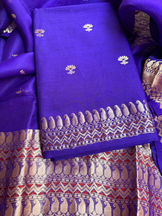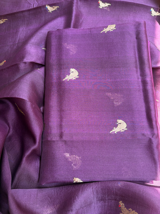 Purple moonga silk kurta, bottom , kora kadhwa silk dupatta
