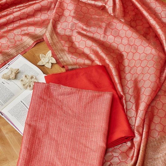 Peach Cotton weaving full jaal kurta, booti dupatta , plain bottom