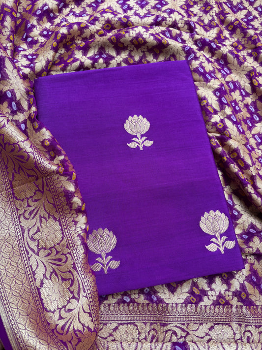 Purple Chiniya kurta , bottom khaadi bandhani dupatta