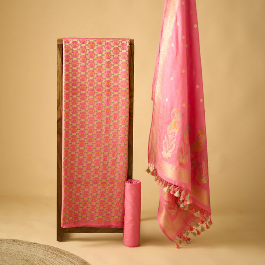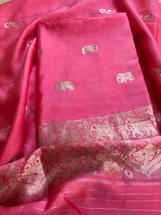 Pink Chiniya Silk Gharchola Weaving kurta, full weaving kurta, plain silk bottom