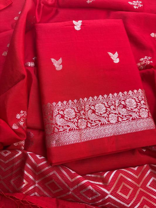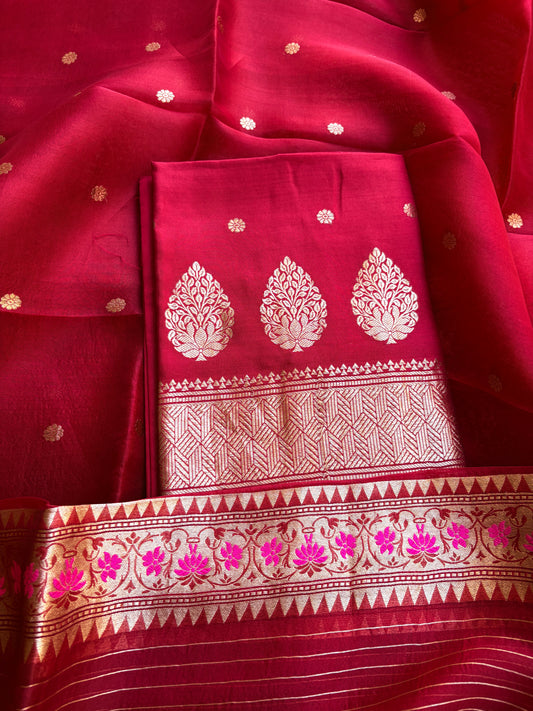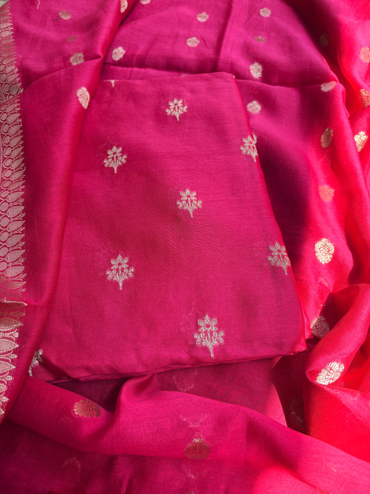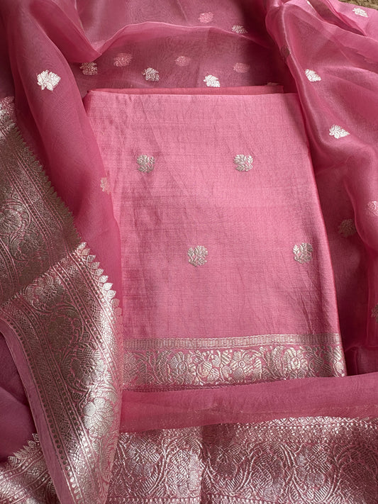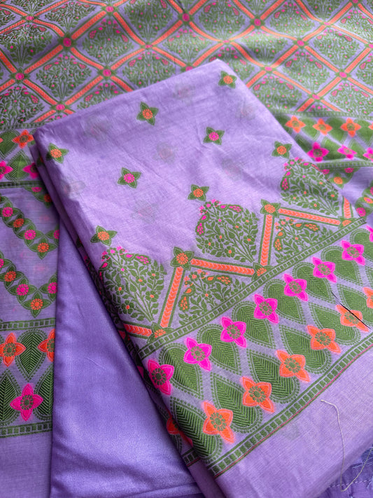 Lavender Chanderi full Jaal woven 3 piece suit.