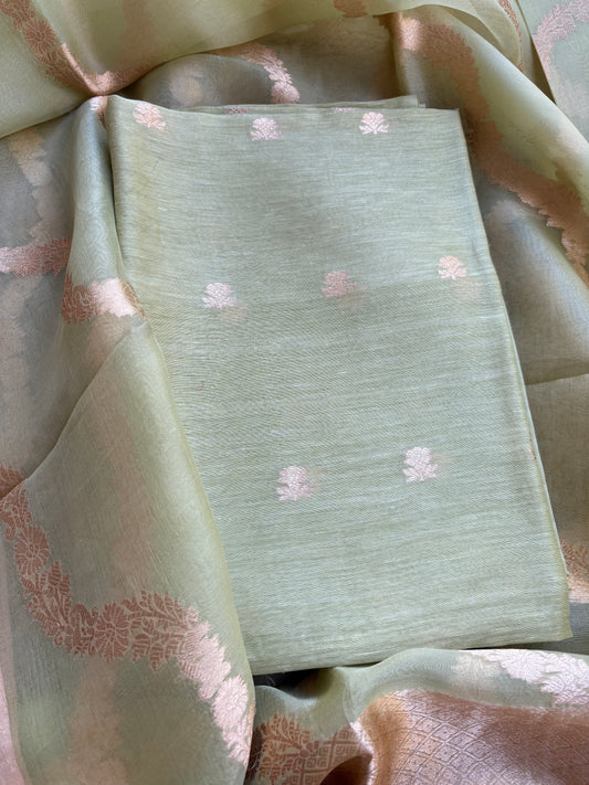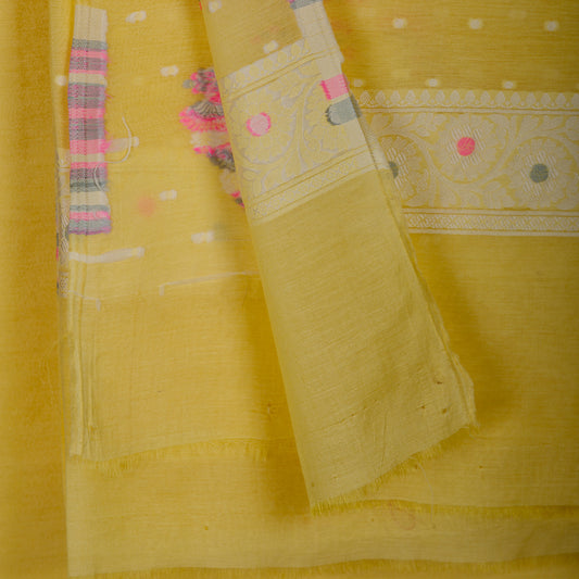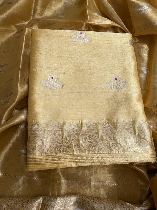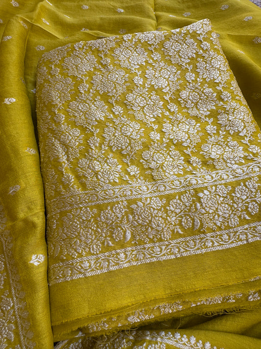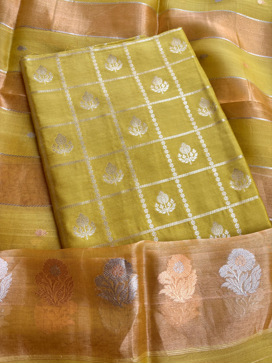 Yellow raw silk kurta, bottom and tissue kadhwa dupatta