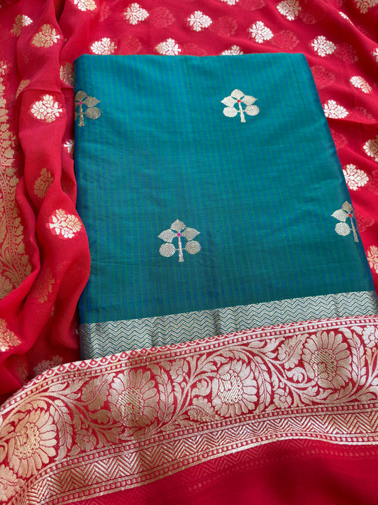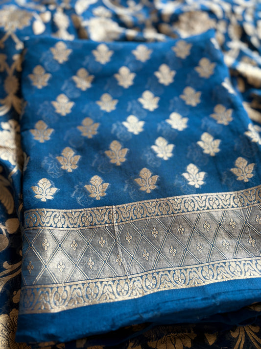 Blue katan by katan silk suit with Khaddi georgette dupatta