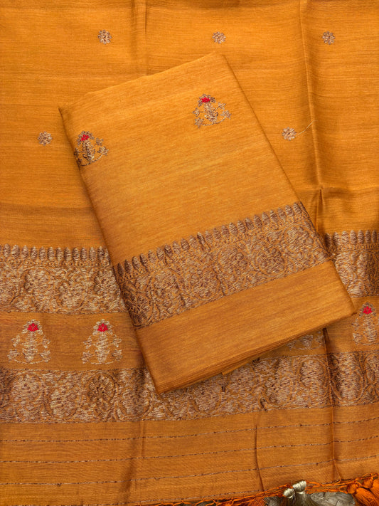 Mustard moonga silk meenadar kadhwa 3 piece suit set