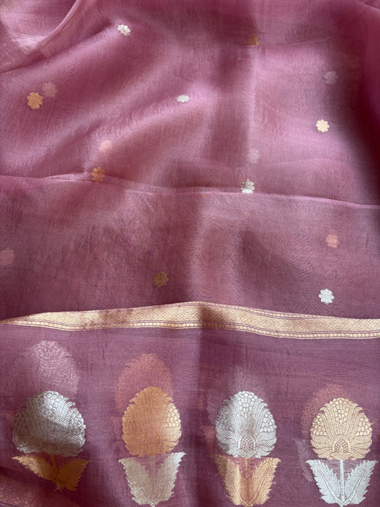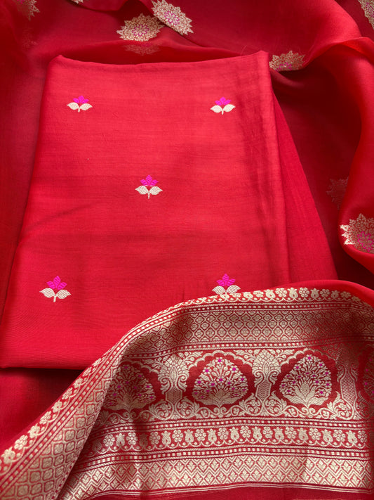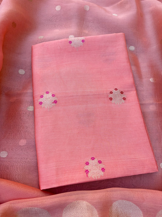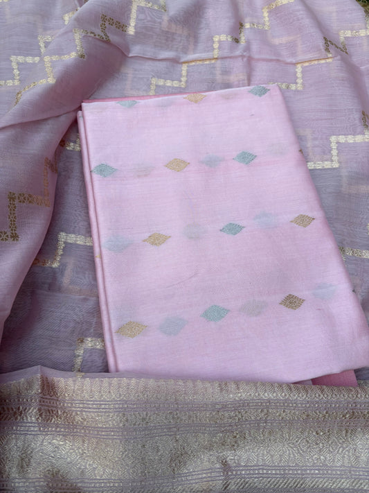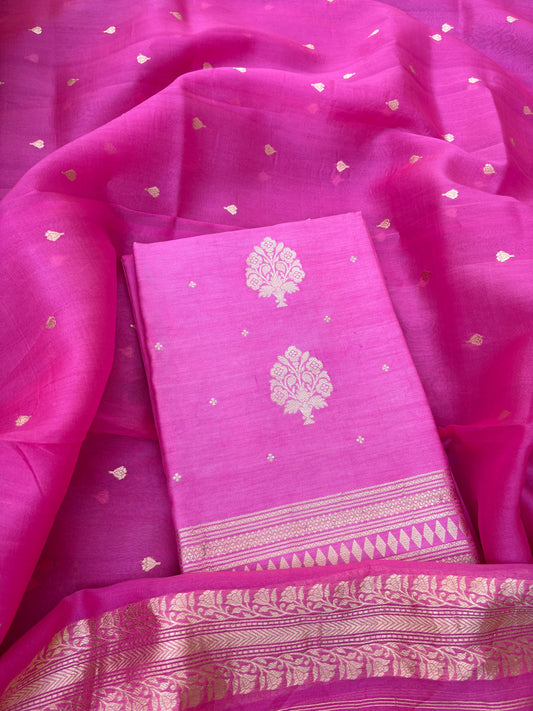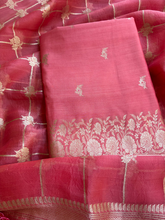 Pink Chiniya silk, kora silk dupatt 3 piece suit set
