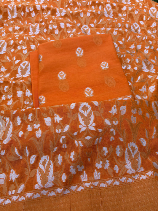 Orange Chanderi cotton tilfi weaving 3 piece suit set