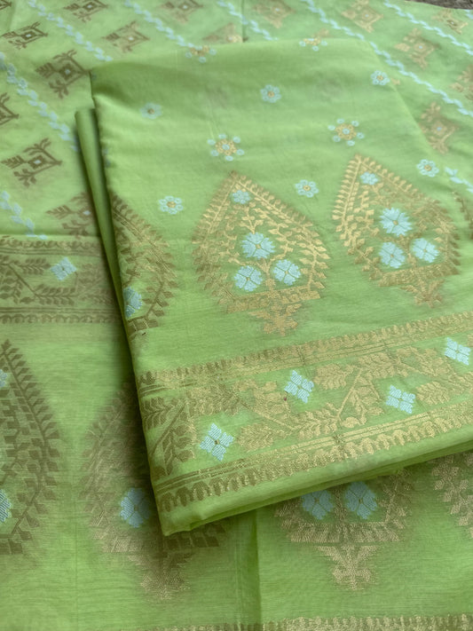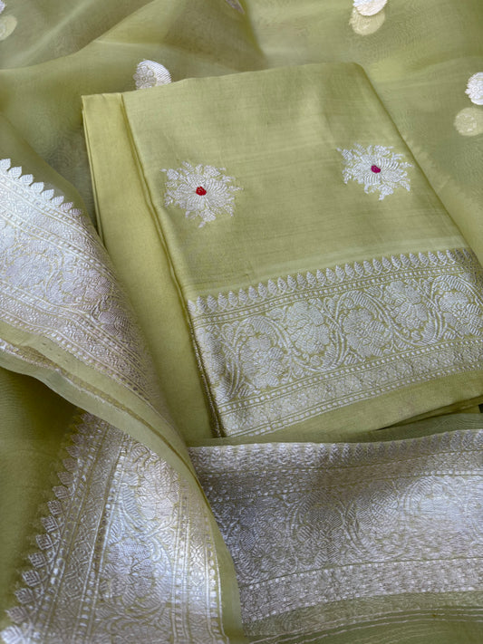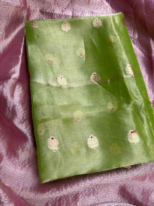Green kadhwa tissue kurta, full weaving dupatta, plain bottom