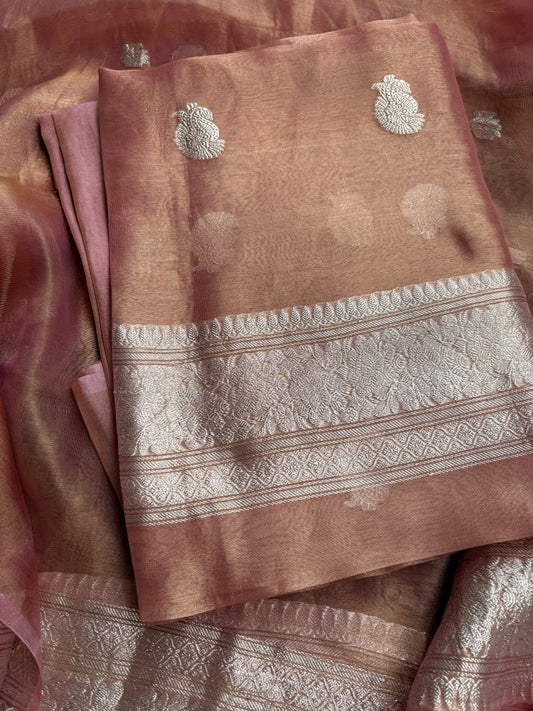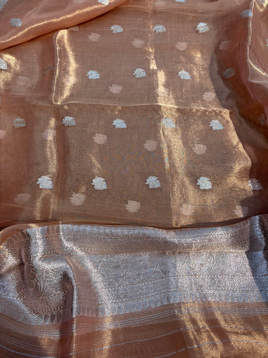 Peach meenadar kurta, plain bottom, kora silk dupatta
