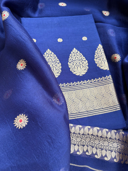 Blue Chiniya silk kurta and kora silk dupatta 3 piece suit set