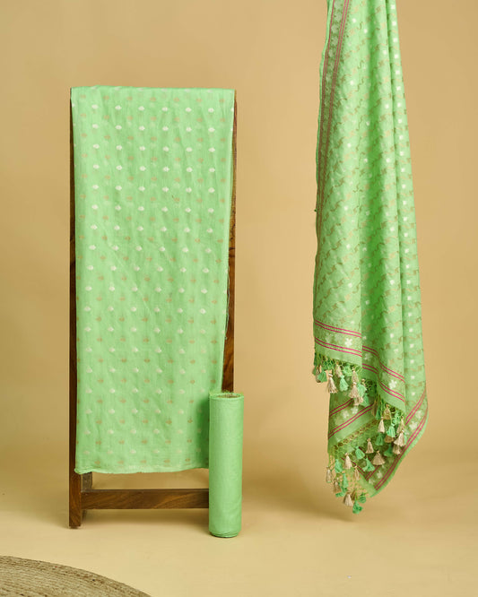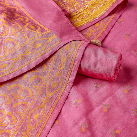 Pink bootis surrounded by small flower weaving Suit Set with Paithani inspired Dupatta