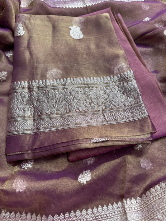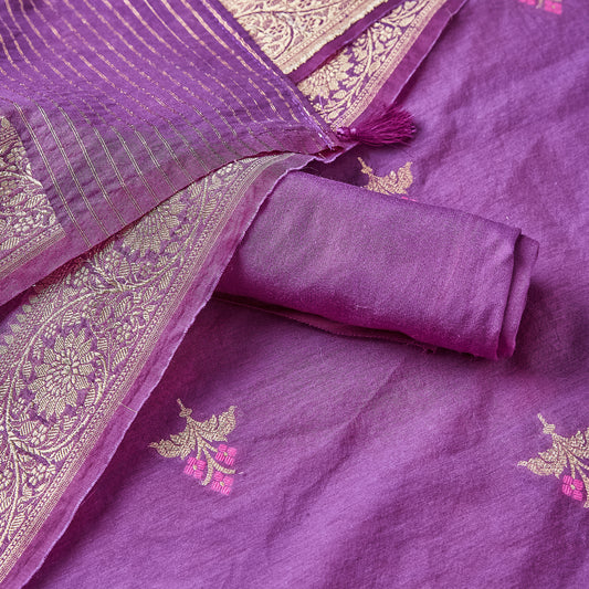 Purple meendar tissue kurta, crush meendar dupatta, plain cotton silk bottom