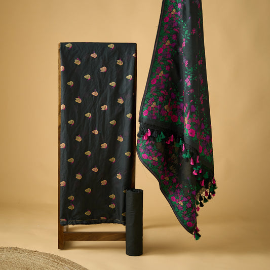 Black Chiniya silk Gharchola weaving kurta, weaving dupatta, plain bottom