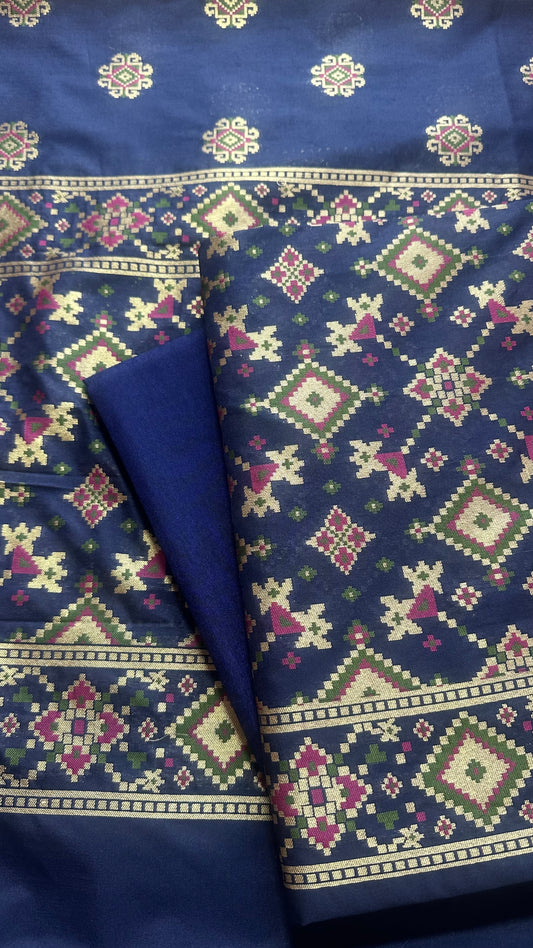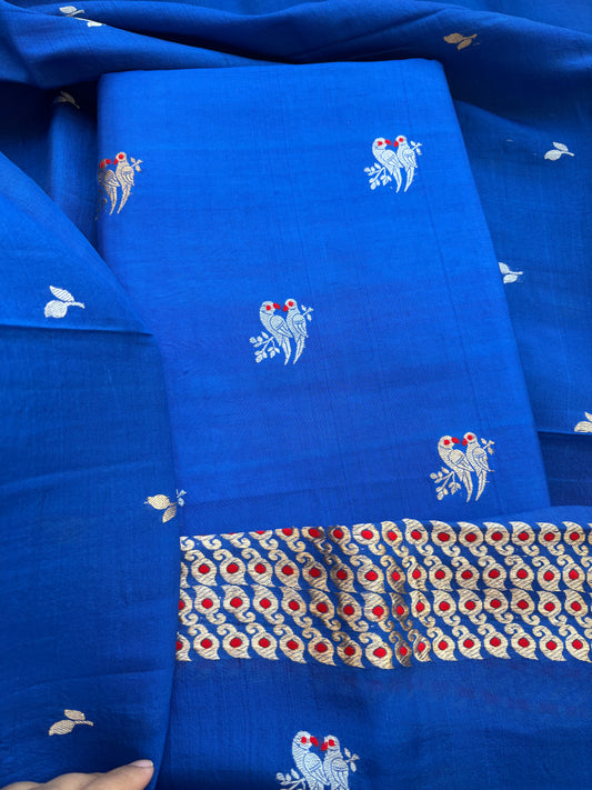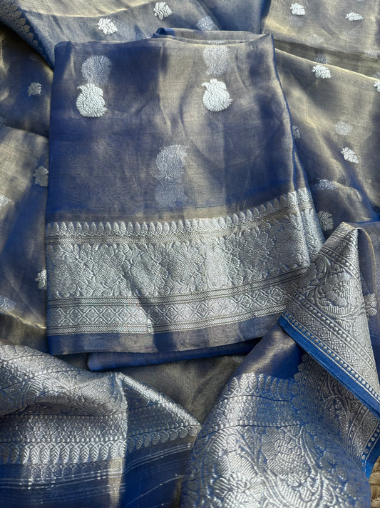 Blue pure silver zari kadhwa tissue 3 piece suit