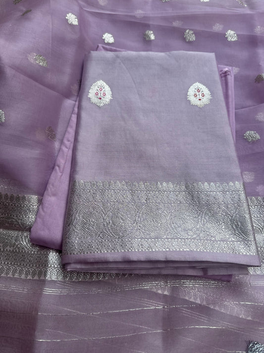 Lavender silver zari chiniya silk kurta, kora silk dupatta, plain bottom