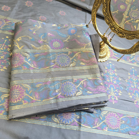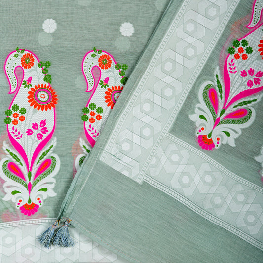 Grey Full jaal purecotton meenakari suit with meenakari dupatta, plain bottom