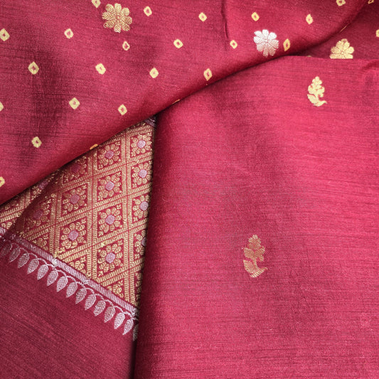 Red moonga silk kurta with moonga bandhani dupatta, plain bottom