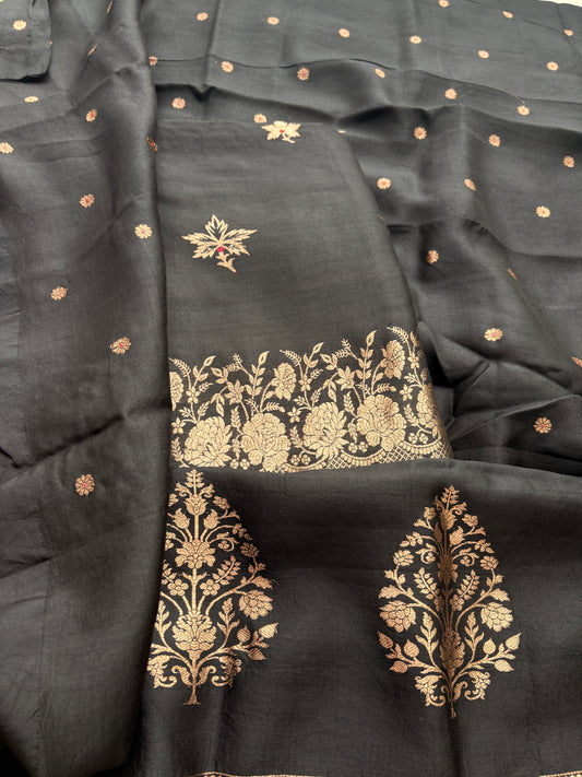 Black mango silk kadhwa suit set