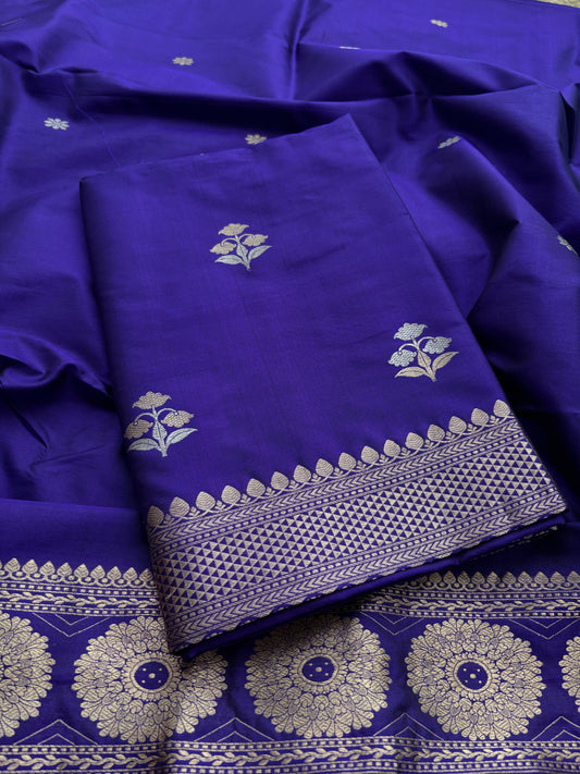 Blue kora kadhwa silk suit set