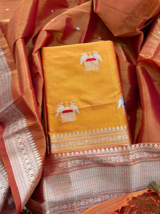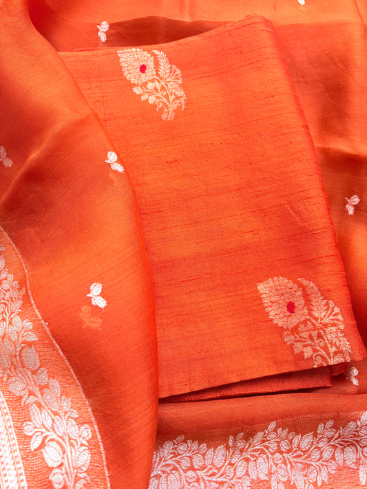 Orange raw silk kadhwa suit set