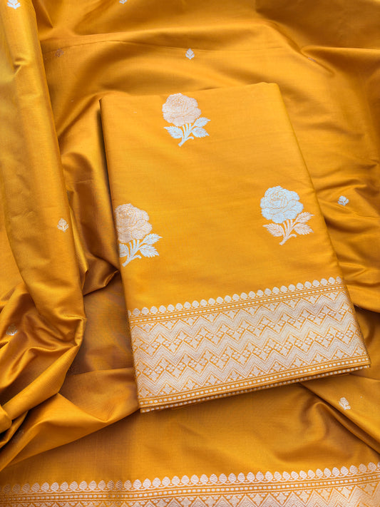 Yellow gold katan silk kadhwa suit set