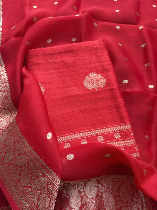 Red raw silk kadhwa suit set
