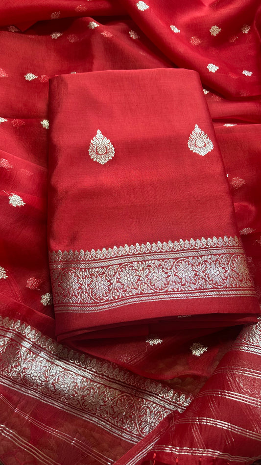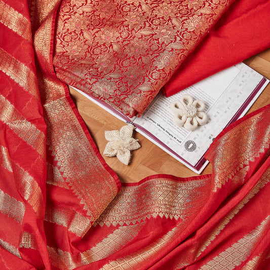 Tomato Red Pure Chiniya katan Silk Suit Set