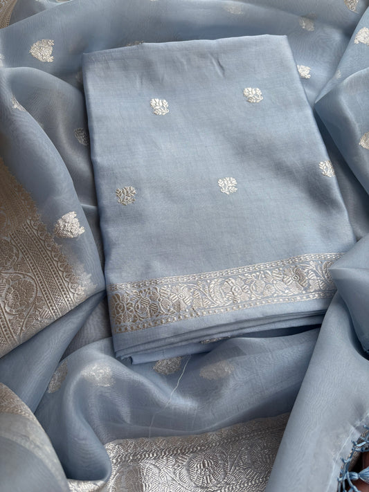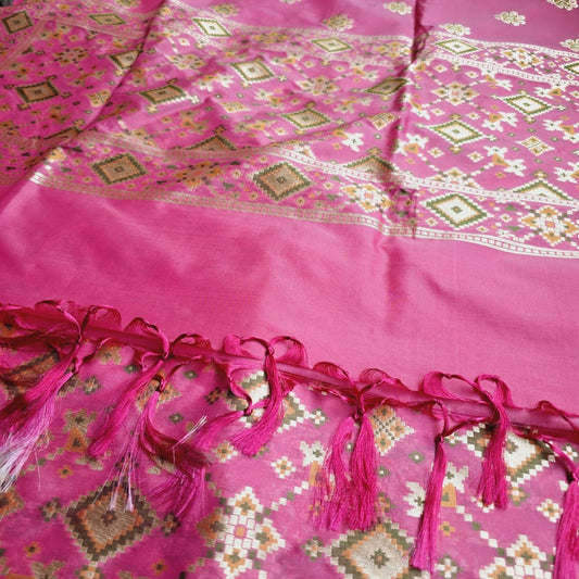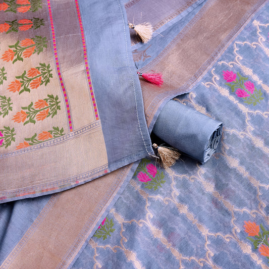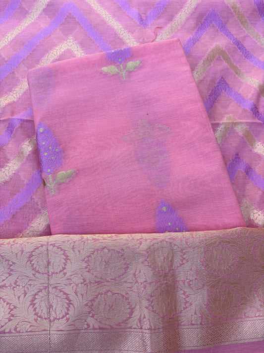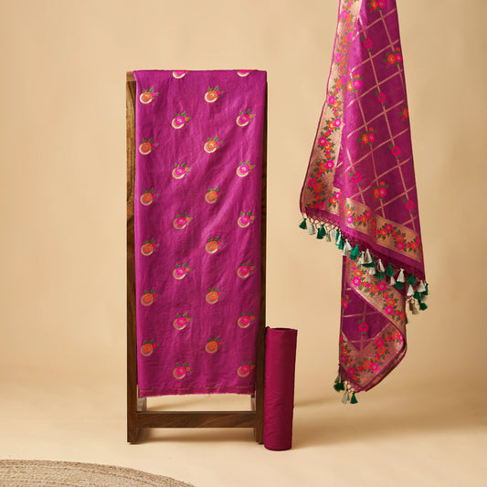 Pink bootis surrounded by small flower weaving Suit Set with Paithani inspired Dupatta