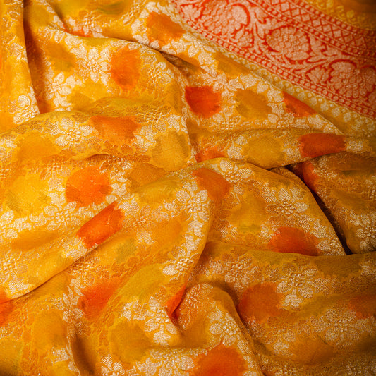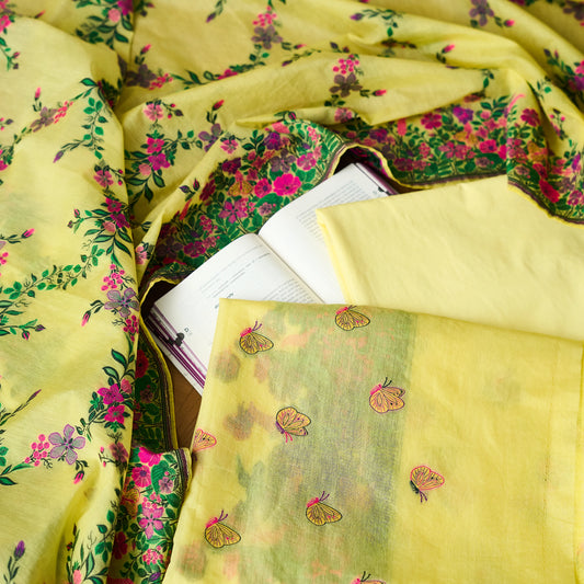 Yellow Full Jaal Meenakari weaving chanderi cotton 3 pieces set.