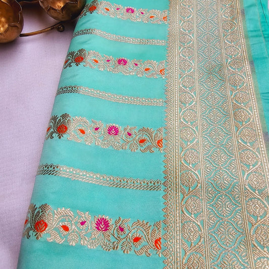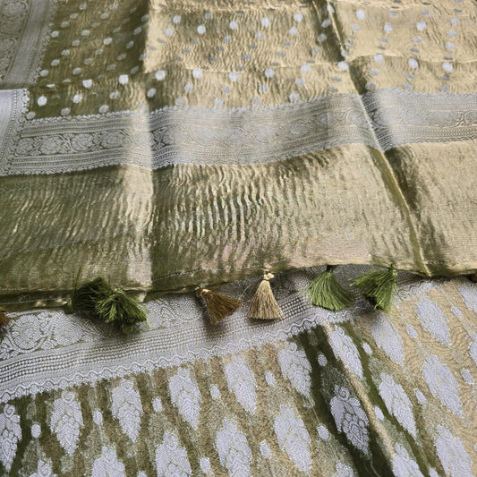 Green Crush Tissue Weaving kurta, Crush tissue dupatta, plain bottom