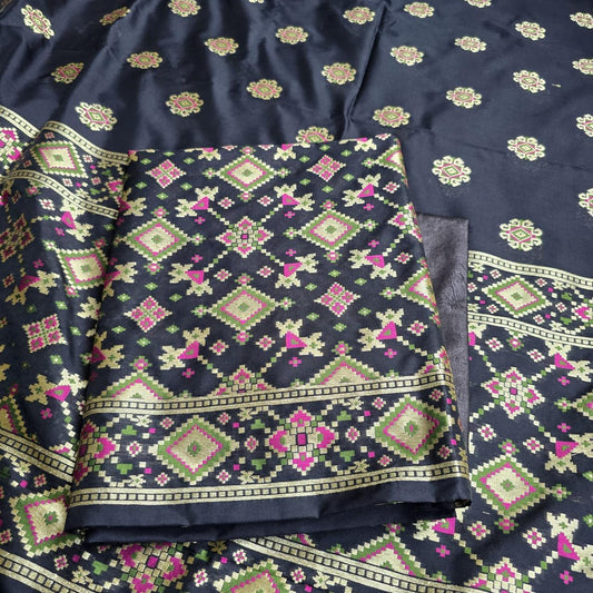 Black Chiniya silk Gharchola weaving kurta, weaving dupatta, plain bottom