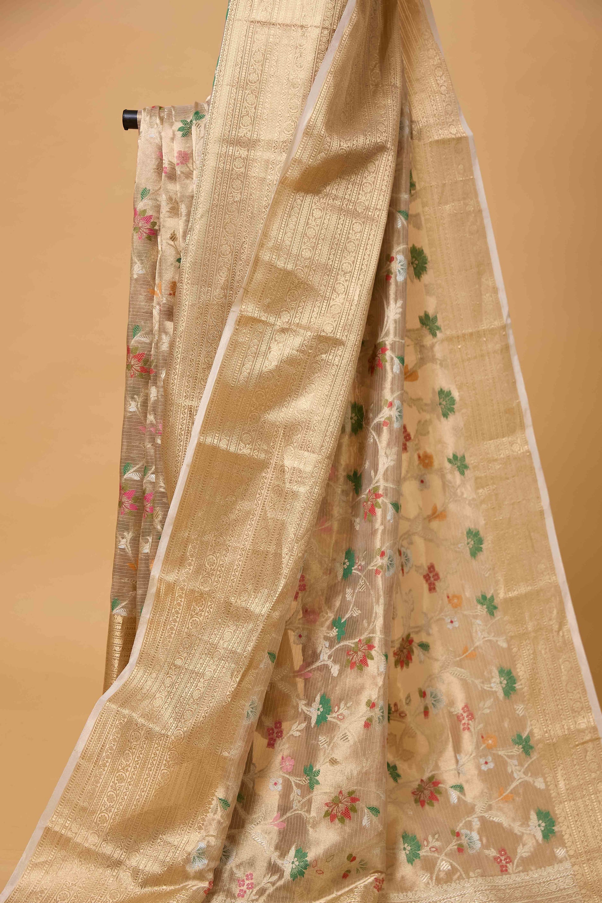 Beige Kota Tissue Meenakari Saree
